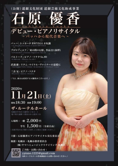 札幌市在住のピアニスト石原優香さんが、デビュー記念のリサイタルを開催。