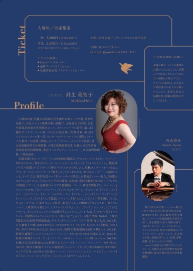 小樽市出身・札幌市在住の声楽家(ソプラノ)針生美智子さんがデビュー25周年を記念してリサイタルを開催。