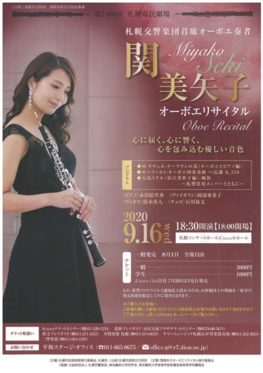 札幌交響楽団首席オーボエ奏者の関美矢子さんが、札響入団5周年を記念してリサイタルを開催。