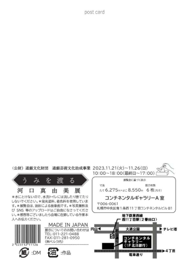 タイトルの「うみを渡る」は創作活動に対し前進していくための決意を込めています。昨年度北海道美術協会賞を受賞した作品と今年一年で描いた絵を展示します。