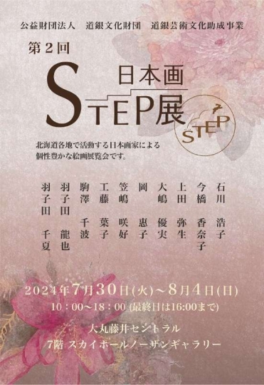 日本画STEP展の開催をご案内します。2回目となる展覧会の出品者は10名。それぞれ出身も日本画の画題も画歴も異なりますが、作品をご覧いただいたかたにはきっと「日本画らしくてほっとしました」「あたたかみのある会ですね」「日本画の表現の幅を感じました」と言って頂けると思います。会場では、作品を描いた時の思いや技法、素材など、作家たちが解説いたします。是非会場でお声を掛けて下さい。お待ちしております。
