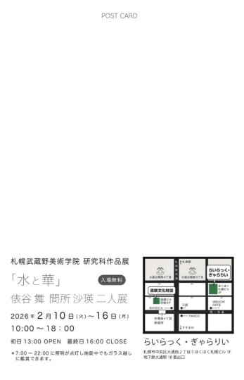 札幌武蔵野美術学院の研究科在籍生による、日本画と陶芸作品の二人展を開催します。