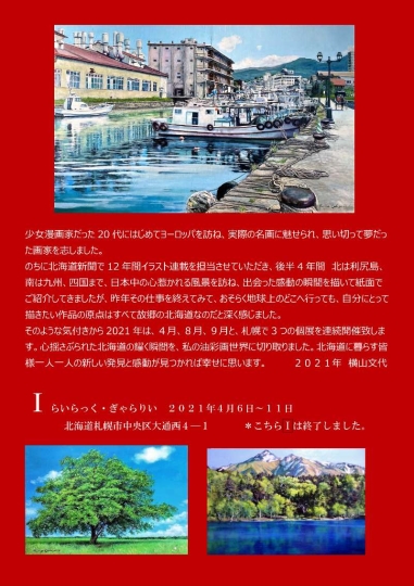 小樽市在住の画家・イラストレーター 横山文代さんは今年札幌市で3回の個展をシリーズ開催します。