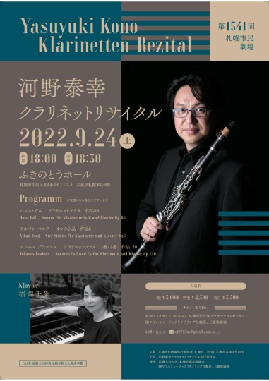 プログラムはブラームスが作曲した2曲のクラリネットソナタとドイツ語圏の作曲家の作品を演奏します。